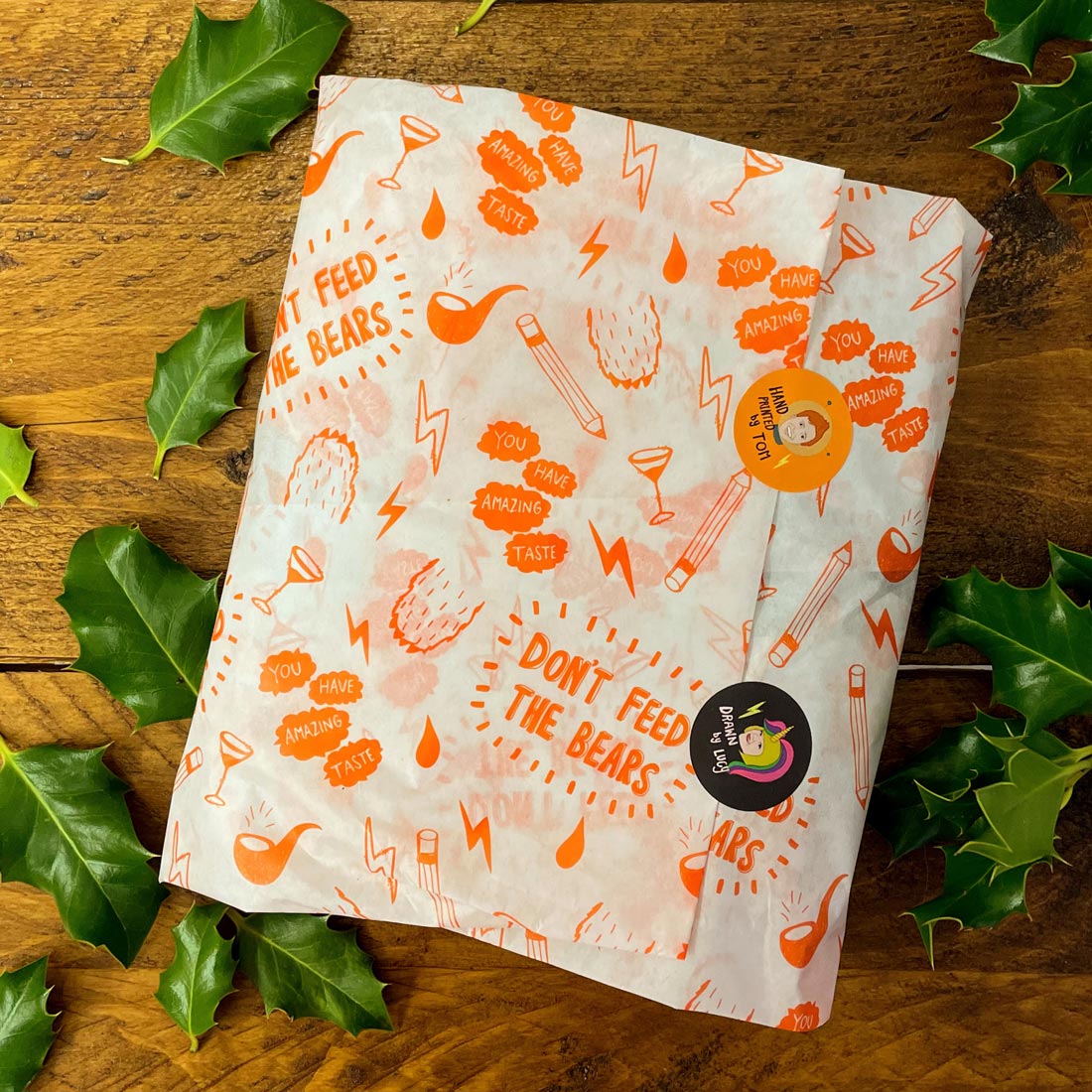 All orders are gift wrapped in super cool Don't Feed the Bears tissue paper and posted to you in a biodegradable paper mailer (it's super strong & waterproof too)